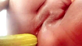 Wet Indian village babe fucks huge vegetable in homemade clip