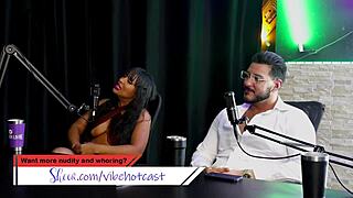 Bruna Carlos teases Ruan with a lap dance in red sheer during the podcast interview