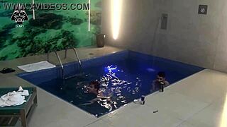 friends dive into motel pool threesome fun