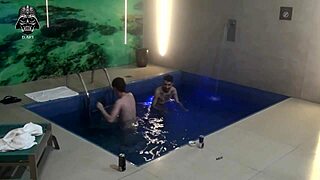 friends dive into motel pool threesome fun