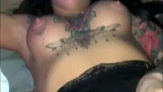 Inked Silicone Beauty Takes Huge Cock Anal