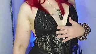Redhead babe in lingerie gives jerk off instructions