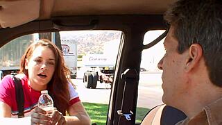 old man surprises young blonde 18+ in car for a wild poke