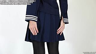 Punished tight pussy student in uniform skirt under strict teacher control