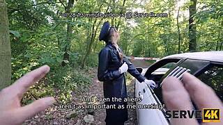 Hot babe rides chauffeur's cock outdoors 😏