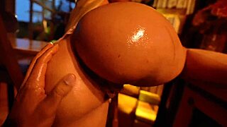 Oily pawg rides that ribbed dildo, pussy gaping wet