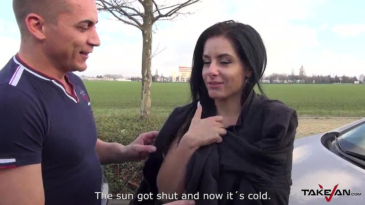 Czech amateur hussy's big tits shine with jizz topping in car