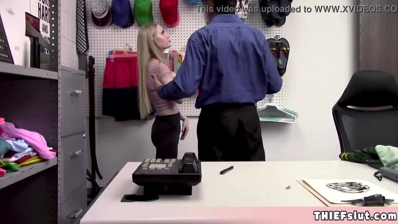 skinny flat chested blonde thief gets her tight pussy punished real hard by a mall cop