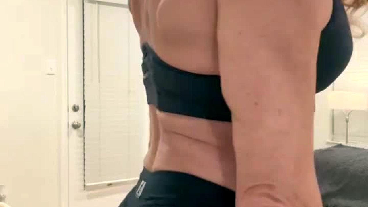 Blonde Wife Flexes Muscles for Fitness Fans