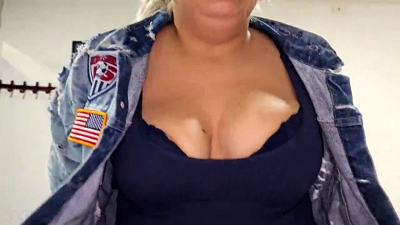 Hey, this beautiful blonde babe with big tits and long hair gets her pussy fucked hard