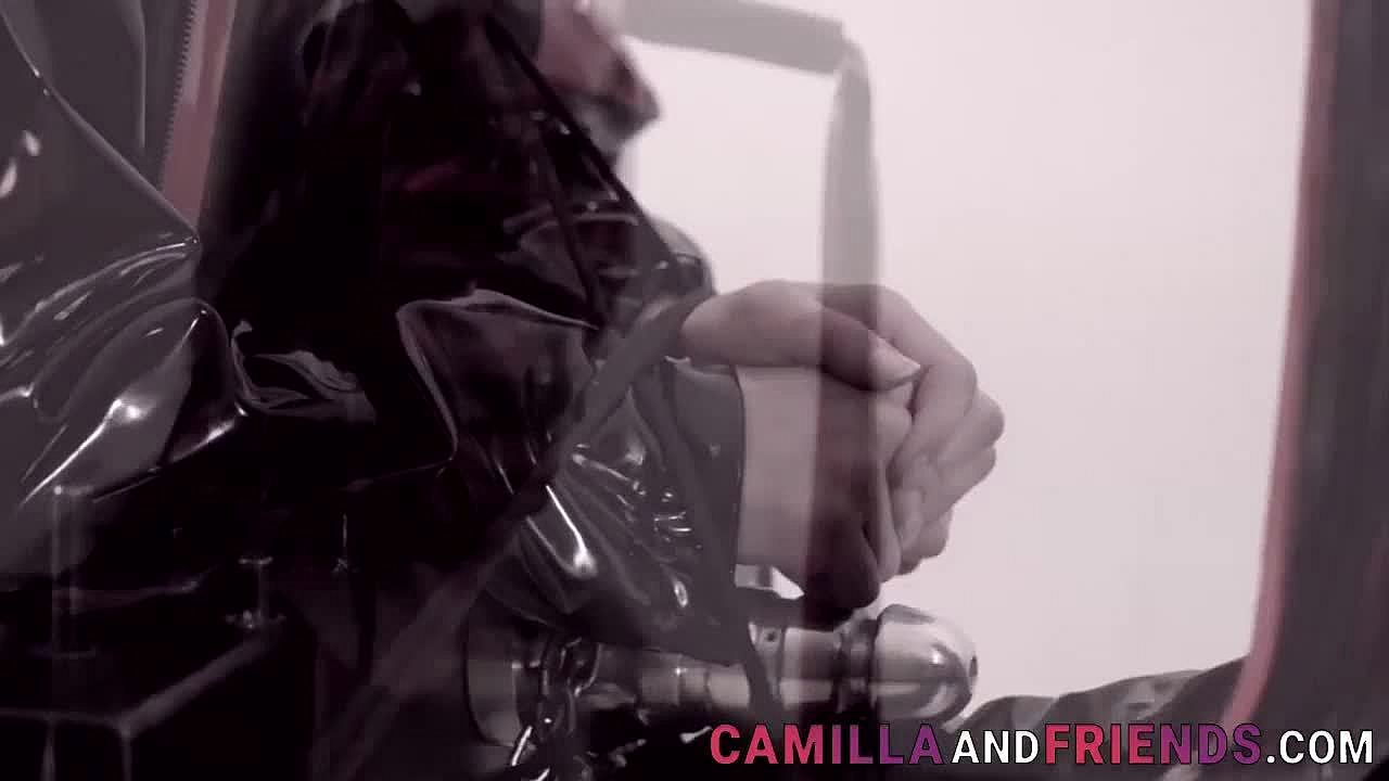 Shemale in latex bangs her boy