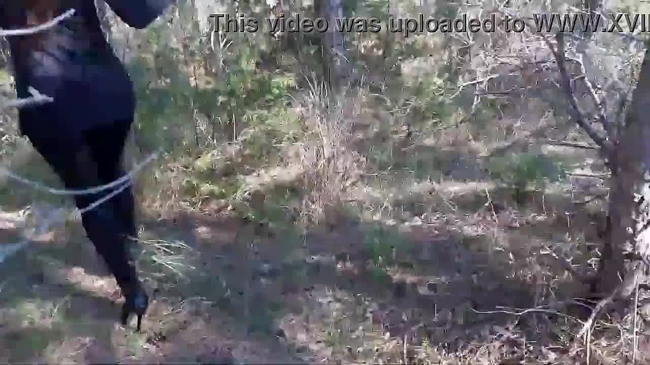 Woman struts high heels through enchanting forest paths