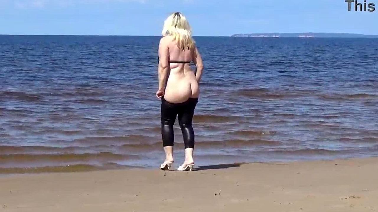 Big leather ass struts beach heels teasing massive curves everywhere ЁЯШИ